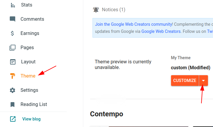 tombol Customize, lalu pilih Edit HTML. Saya sarankan